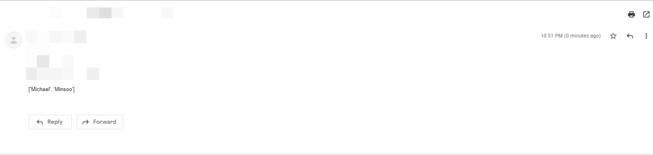 발송 후 미리 지정해둔 이메일함으로 가보면, 아래와 같이 발송되있는 것을 확인할 수 있습니다.