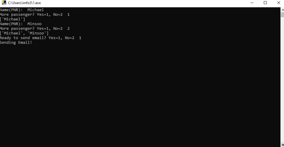 1 을 누른다면 이메일을 보낸다는 말과 함께 자동으로 프로그램은 종료 됩니다.