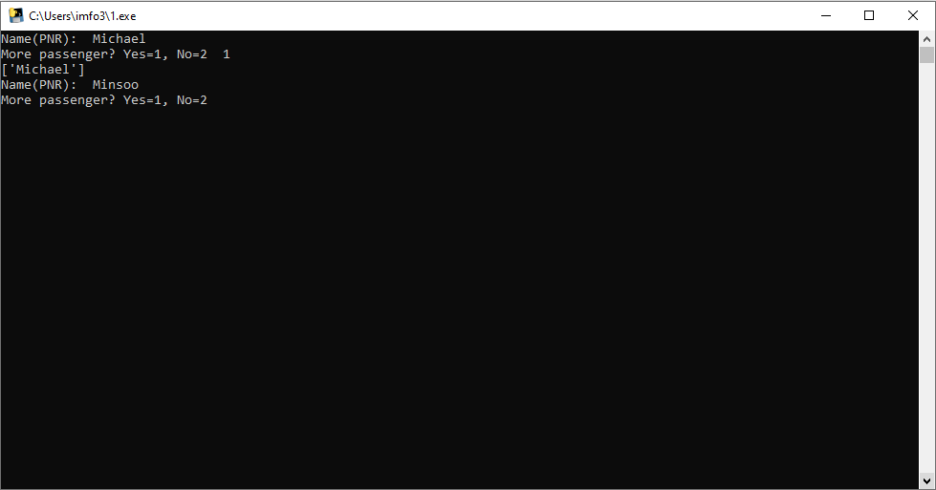 추가 손님 Minsoo가 있기 때문에 1을 누른 후, Minsoo를 입력해 줍니다.