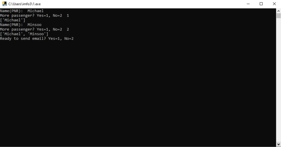 그러면 프로그램에서 최종 손님 목록 리스트를 보여준 후, 이메일을 보낼 준비가 됬냐고 물어봅니다.