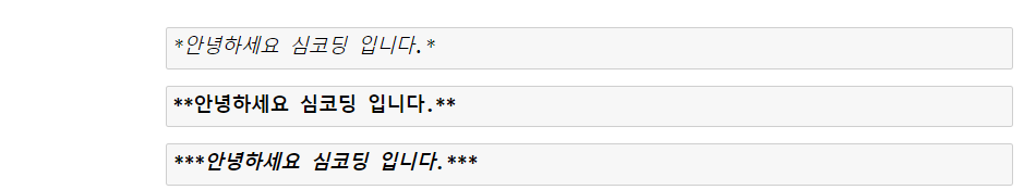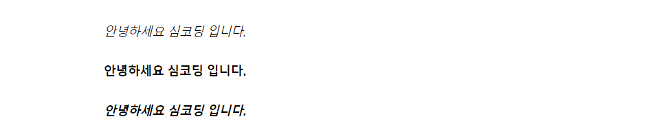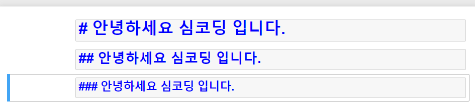 이 상태에서 텍스트를 입력 후, 실행을 하면 아래와 같이 그냥 일반 텍스트를 입력한 것 처럼 나옵니다.