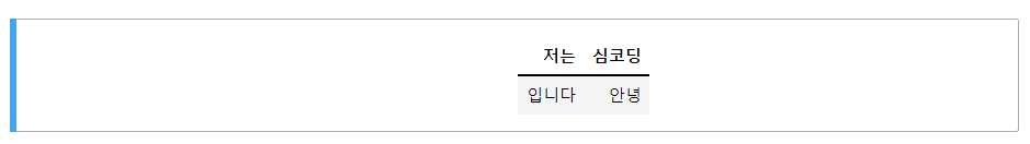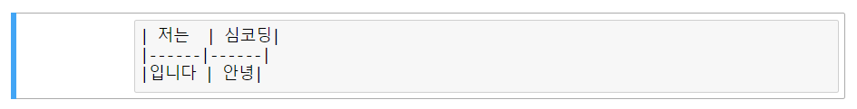 위를 실행하면 아래와 같이 테이블이 나옵니다. 입력을 할때 꼭 줄 간격을 맞추지 않아도 됩니다.