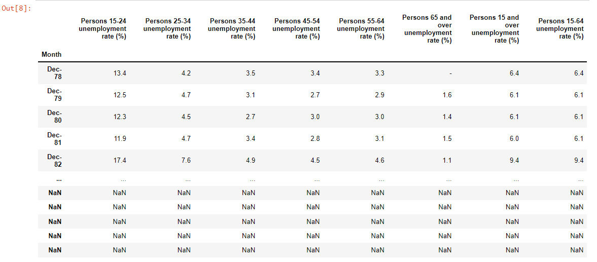 이 자료는 1978년부터 2017년까지 호주의 실업률을 나이에 따라 분류를 해둔 자료 입니다.
