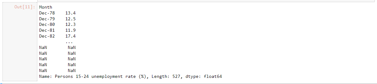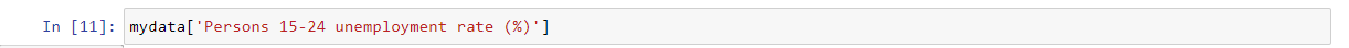 만약 내가 Persons 15 - 24 unemployment rate, 즉 15 - 24살의 실업률의 데이터만 보고 싶다면 어떻게 해야 할까요?