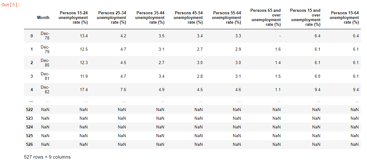 이 자료는 1978년부터 2017년까지 호주의 실업률을 나이에 따라 분류를 해둔 자료 입니다.