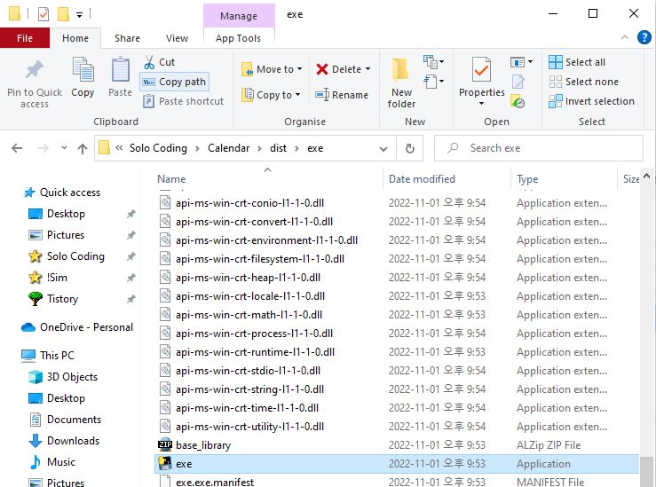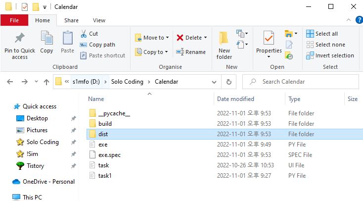 dist 폴더 내에 exe 실행파일을 찾을 수 있을 겁니다.