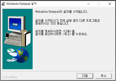 다만 이렇게 exe 파일을 만들었을 때에는 외부에 배포를 하기에 무리가 있다는 점이 있는데요, 이 점을 인스톨 팩토리가 도와주는 겁니다. 인스톨 팩토리를 통해 exe 파일을 만들면 아래와 같은 창이 나오면서 설치가 시작되는데요, 외부 프로그램을 많이 이용해보신 분들은 굉장히 익숙하실 겁니다.