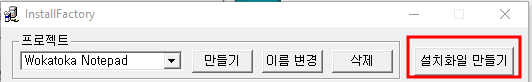 여기까지 진행하셨다면 오른쪽 상단의 "설치화일 만들기"를 누르셔서 설치파일을 만드실 수 있습니다.